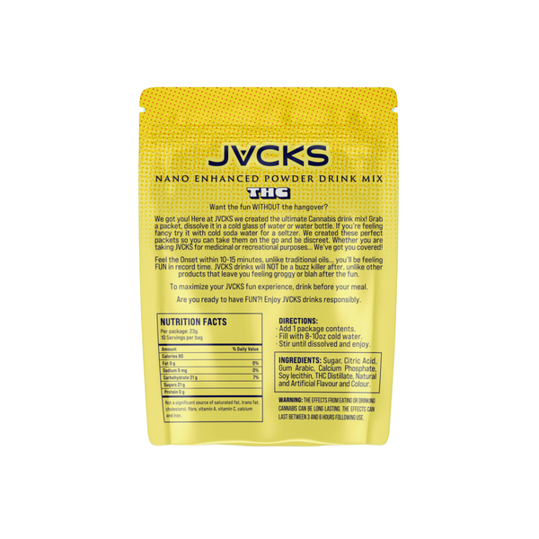 We got you! Here at JVCKS we created the ultimate Cannabis drink mix! Grab a packet, dissolve in a cold glass of water or water bottle. If you’re feeling fancy try it with cold soda water for a seltzer. We created these perfect packets so you can take them on the go and be discreet.